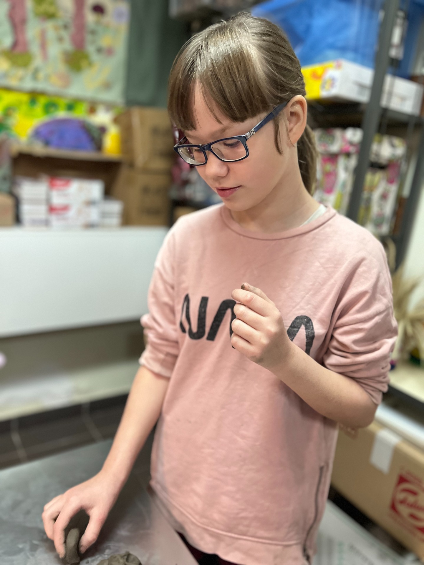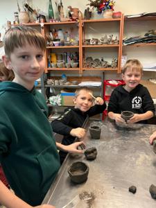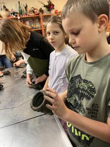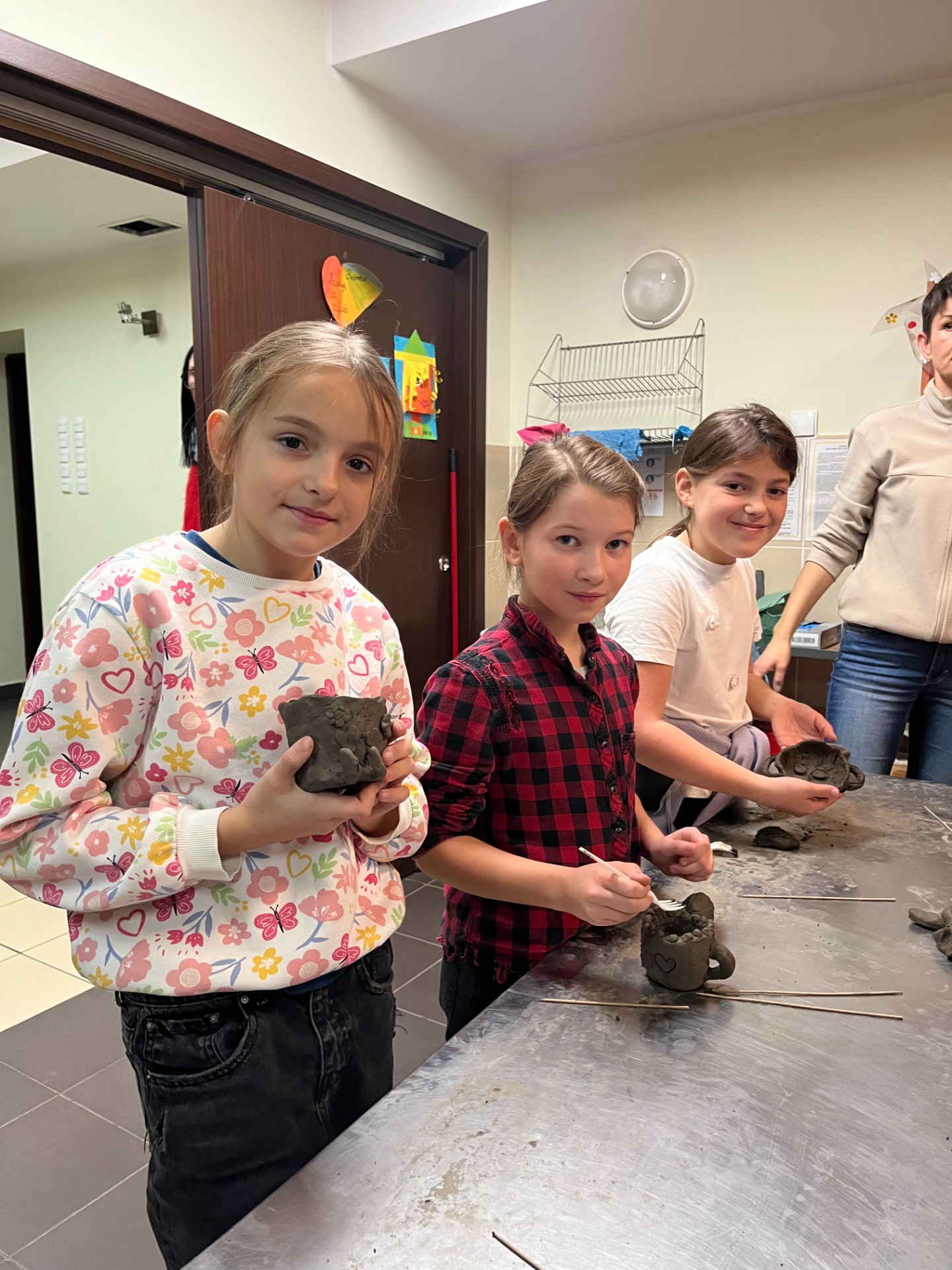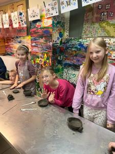 Podczas zajęć dzieci poznały proces powstawania glinianych naczyń. W drugiej części spotkania uczniowie samodzielnie wykonali swoje prace z gliny, rozwijając zdolności manualne i kreatywność.