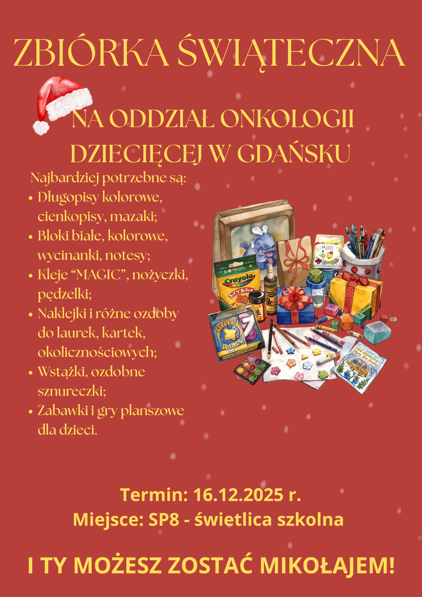 I Ty możesz zostać Mikołajem ;) szczegóły na plakacie poniżej Galeria zdjęć Powiązane wiadomości Dzień postaci z bajek Koło turystyczne Z wizytą na Olimpie I Ty możesz zostać Mikołajem ;) szczegóły na plakacie... Losy żołnierza i dzieje oręża polskiego Z wizytą w teatrze Drukuj Udostępnij Data dodania: 19.11.2025 Wyświetlono: 19 Aktualności