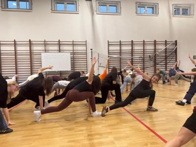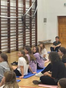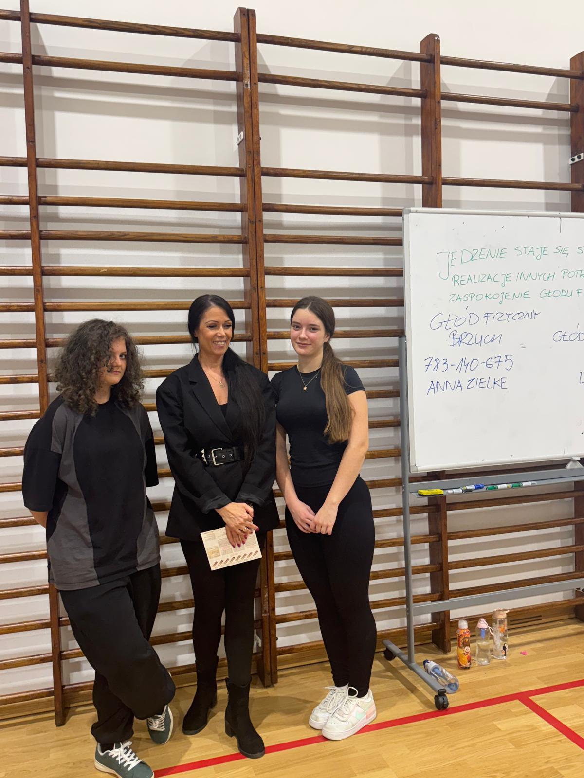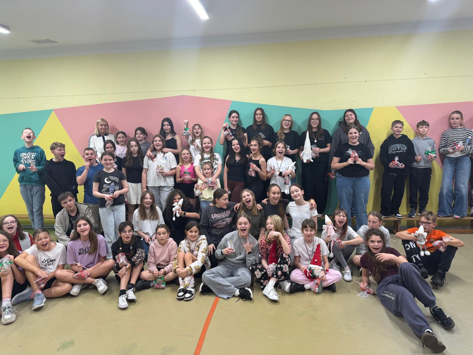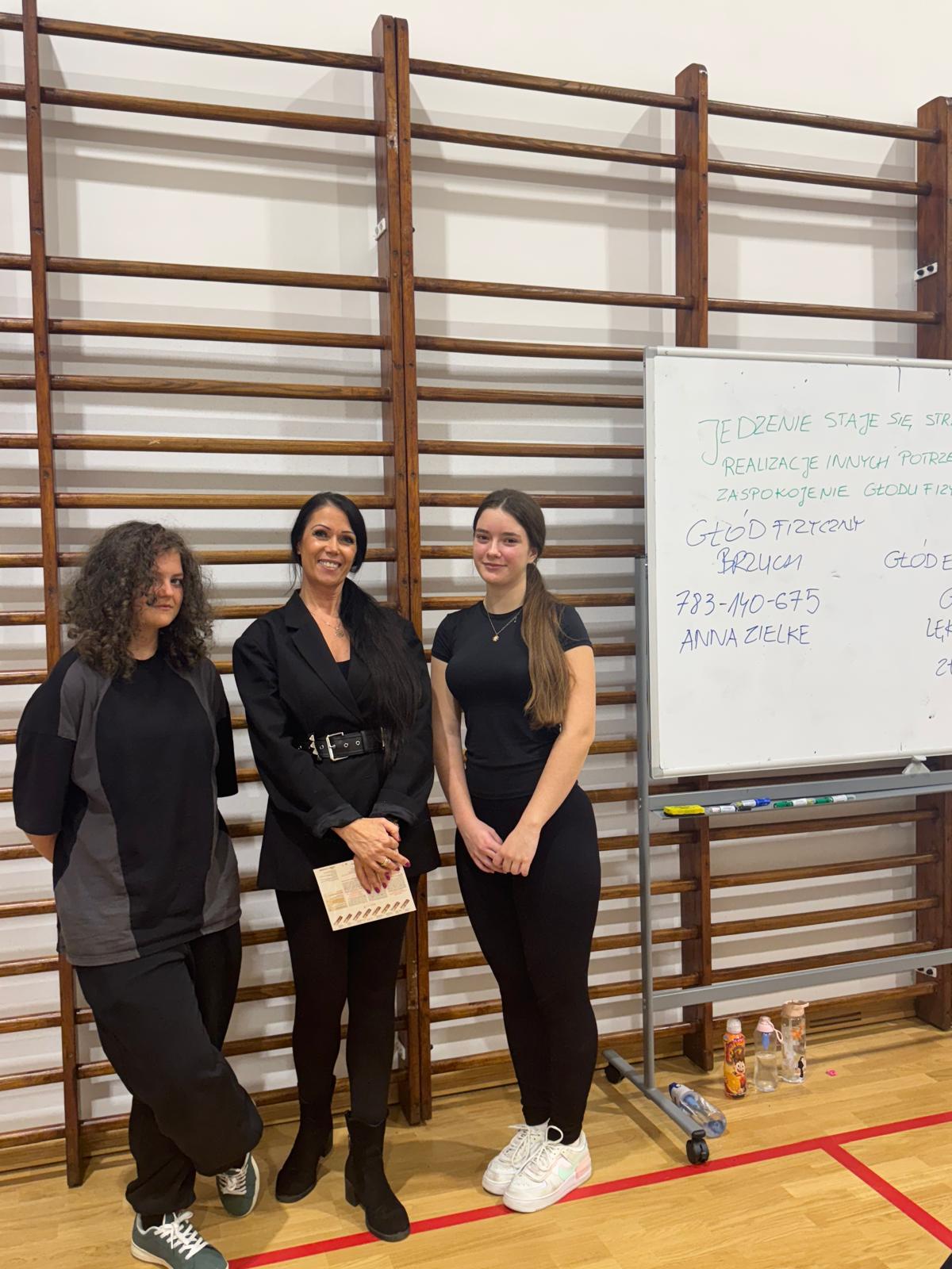 W czwartkowe popołudnie 4 grudnia uczniowie klas VI-VIII uczestniczący w zajęciach z edukacji zdrowotnej prowadzonych przez J. Gulewicz i K. Wilmont wzięli udział w trzygodzinnym spotkaniu podsumowującym pracę w I semestrze. W czasie trwania zajęć odbyły się warsztaty taneczne, które poprowadził Kacper Miedziński – były uczeń naszej szkoły a dziś instruktor tańca i właściciel szkoły tańca. Uczniowie mieli okazję nauczyć się prostego układu tanecznego. Po warsztatach tanecznych odbyło się spotkanie z psychodietetykiem Anną Zielke. Pani Ania przeprowadziła prelekcję na temat naszych relacji z jedzeniem i samym sobą. Pomogła uczniom zrozumieć nasze nawyki żywieniowe i jak budować pozytywną relację ze swoim ciałem. Po spotkaniu z psychodietetykiem przyszedł czas na wspólną zabawę. Uczniowie uczyli się współpracy w grupie, rywalizując uczyli się zasad fair play, nawiązywali nowe znajomości i integrowali się w grupie rówieśniczej. Po bardzo miłym spotkaniu zostały wręczone nagrody dla zwycięzców poszczególnych konkurencji i świąteczne upominki dla każdego uczestnika. Nagrody zostały ufundowane przez Lęborską Fundację Przebudzenie.