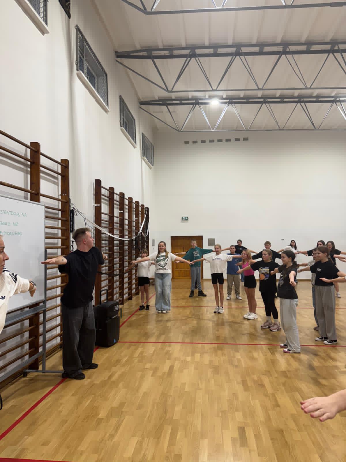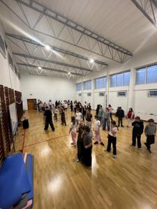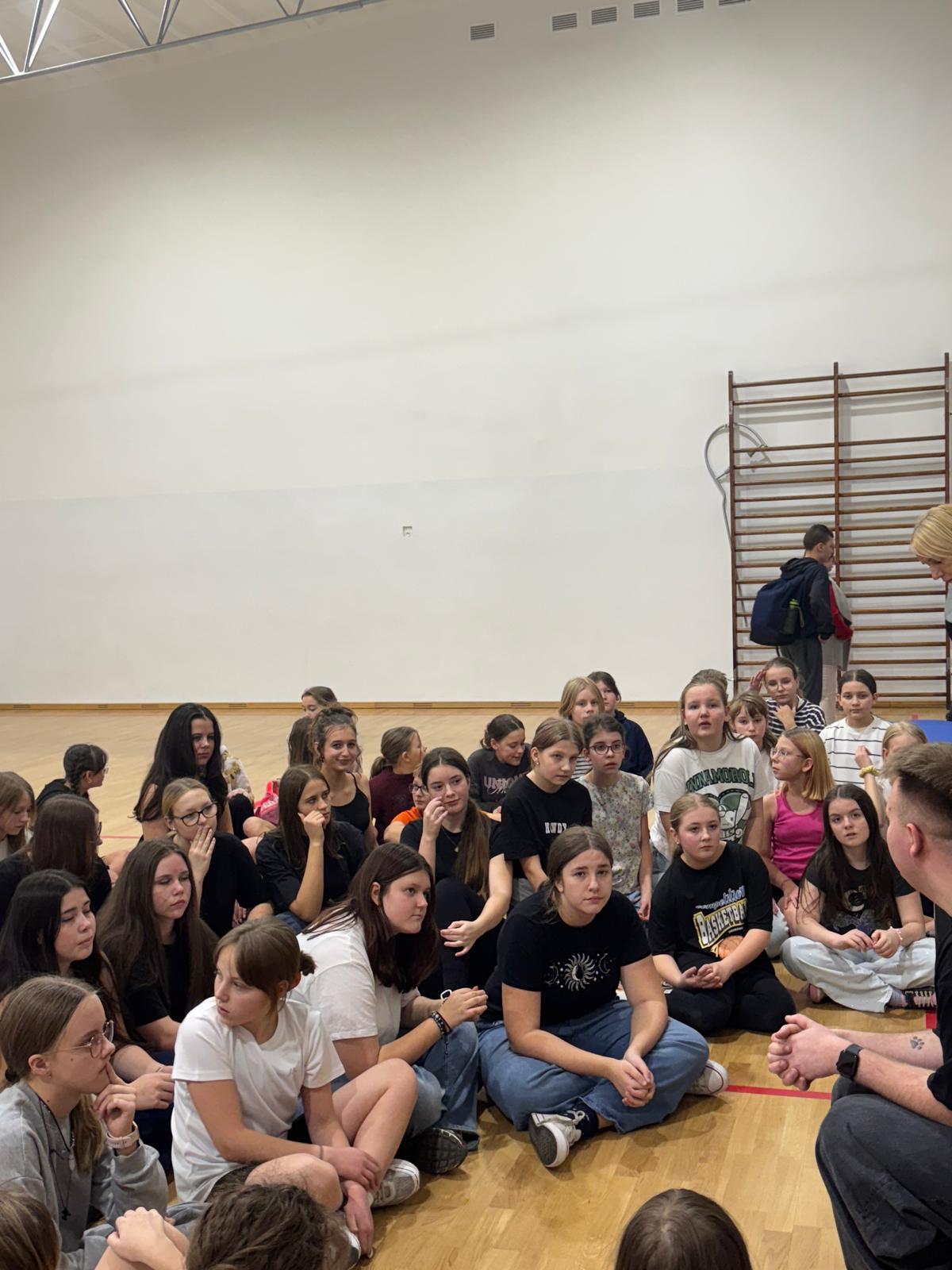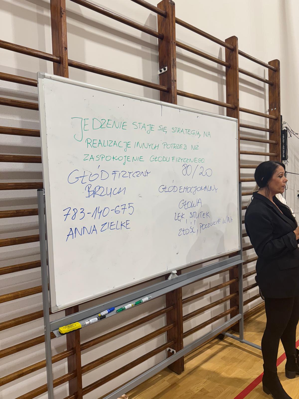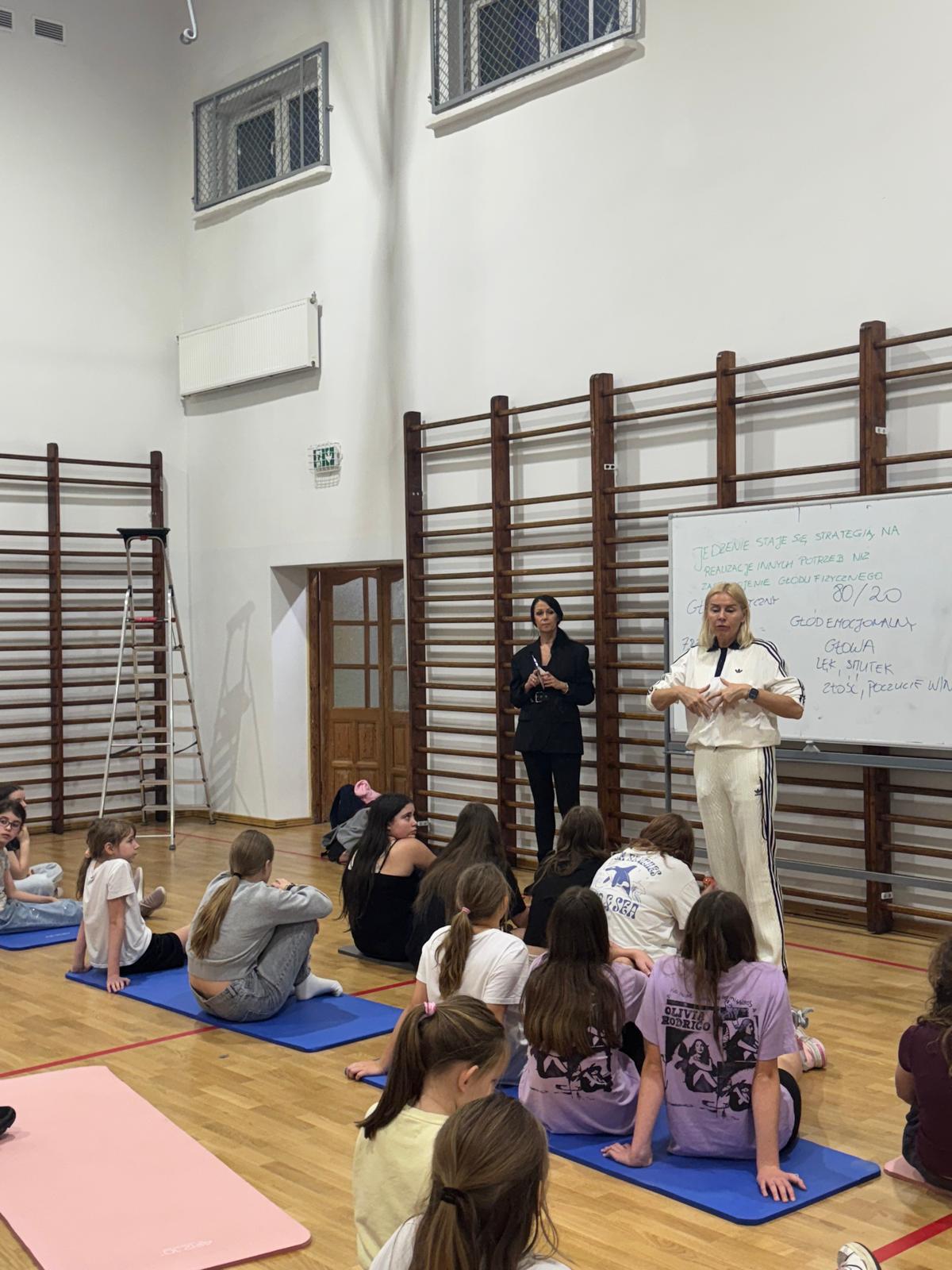 W czwartkowe popołudnie 4 grudnia uczniowie klas VI-VIII uczestniczący w zajęciach z edukacji zdrowotnej prowadzonych przez J. Gulewicz i K. Wilmont wzięli udział w trzygodzinnym spotkaniu podsumowującym pracę w I semestrze. W czasie trwania zajęć odbyły się warsztaty taneczne, które poprowadził Kacper Miedziński – były uczeń naszej szkoły a dziś instruktor tańca i właściciel szkoły tańca. Uczniowie mieli okazję nauczyć się prostego układu tanecznego. Po warsztatach tanecznych odbyło się spotkanie z psychodietetykiem Anną Zielke. Pani Ania przeprowadziła prelekcję na temat naszych relacji z jedzeniem i samym sobą. Pomogła uczniom zrozumieć nasze nawyki żywieniowe i jak budować pozytywną relację ze swoim ciałem. Po spotkaniu z psychodietetykiem przyszedł czas na wspólną zabawę. Uczniowie uczyli się współpracy w grupie, rywalizując uczyli się zasad fair play, nawiązywali nowe znajomości i integrowali się w grupie rówieśniczej. Po bardzo miłym spotkaniu zostały wręczone nagrody dla zwycięzców poszczególnych konkurencji i świąteczne upominki dla każdego uczestnika. Nagrody zostały ufundowane przez Lęborską Fundację Przebudzenie.