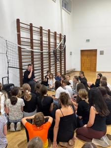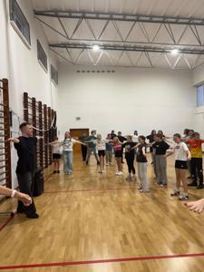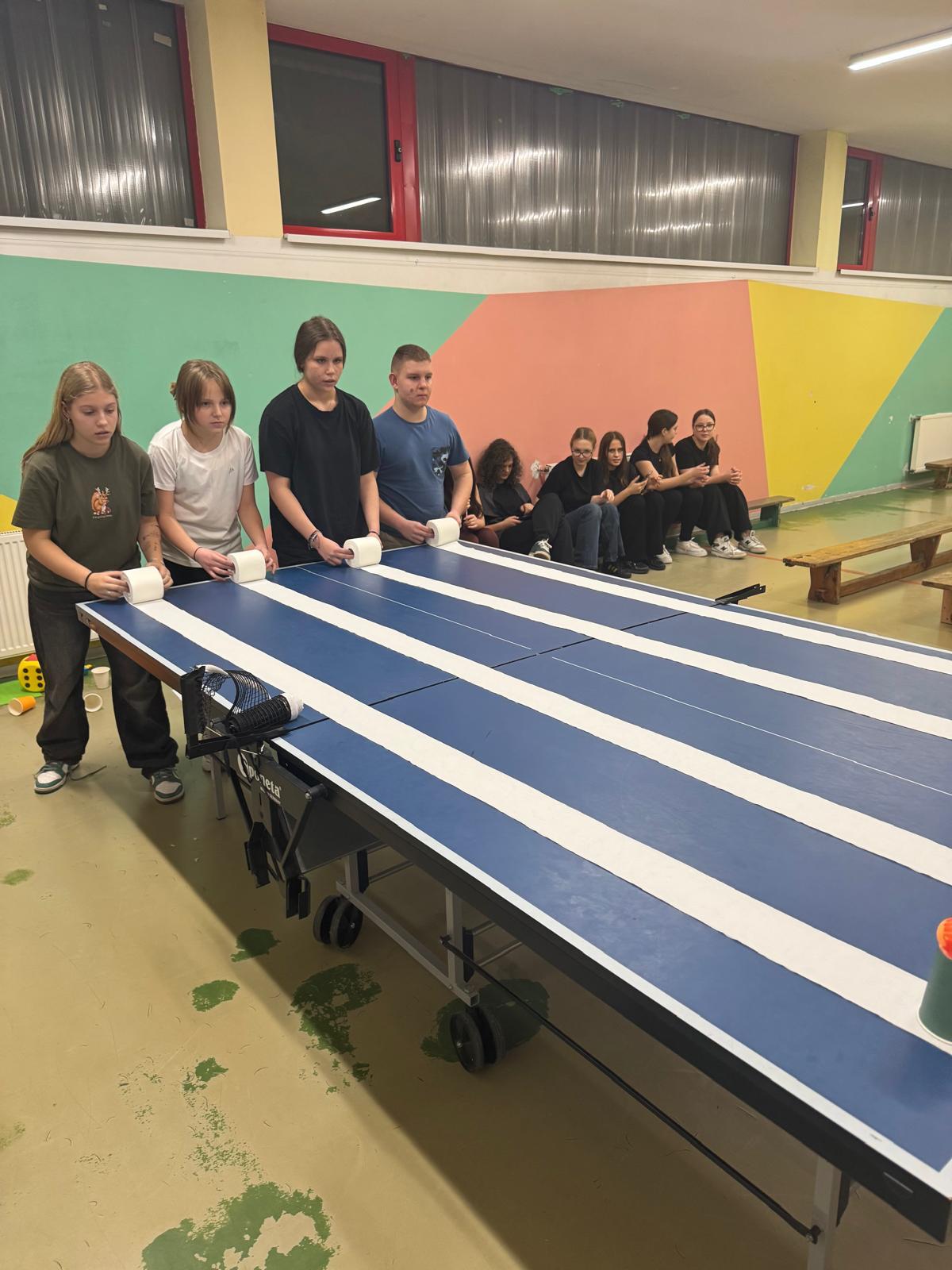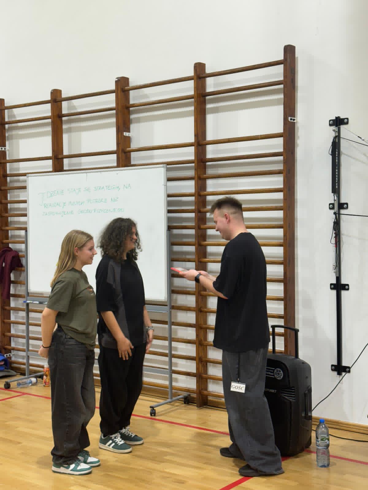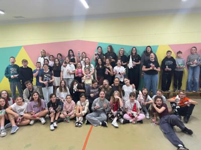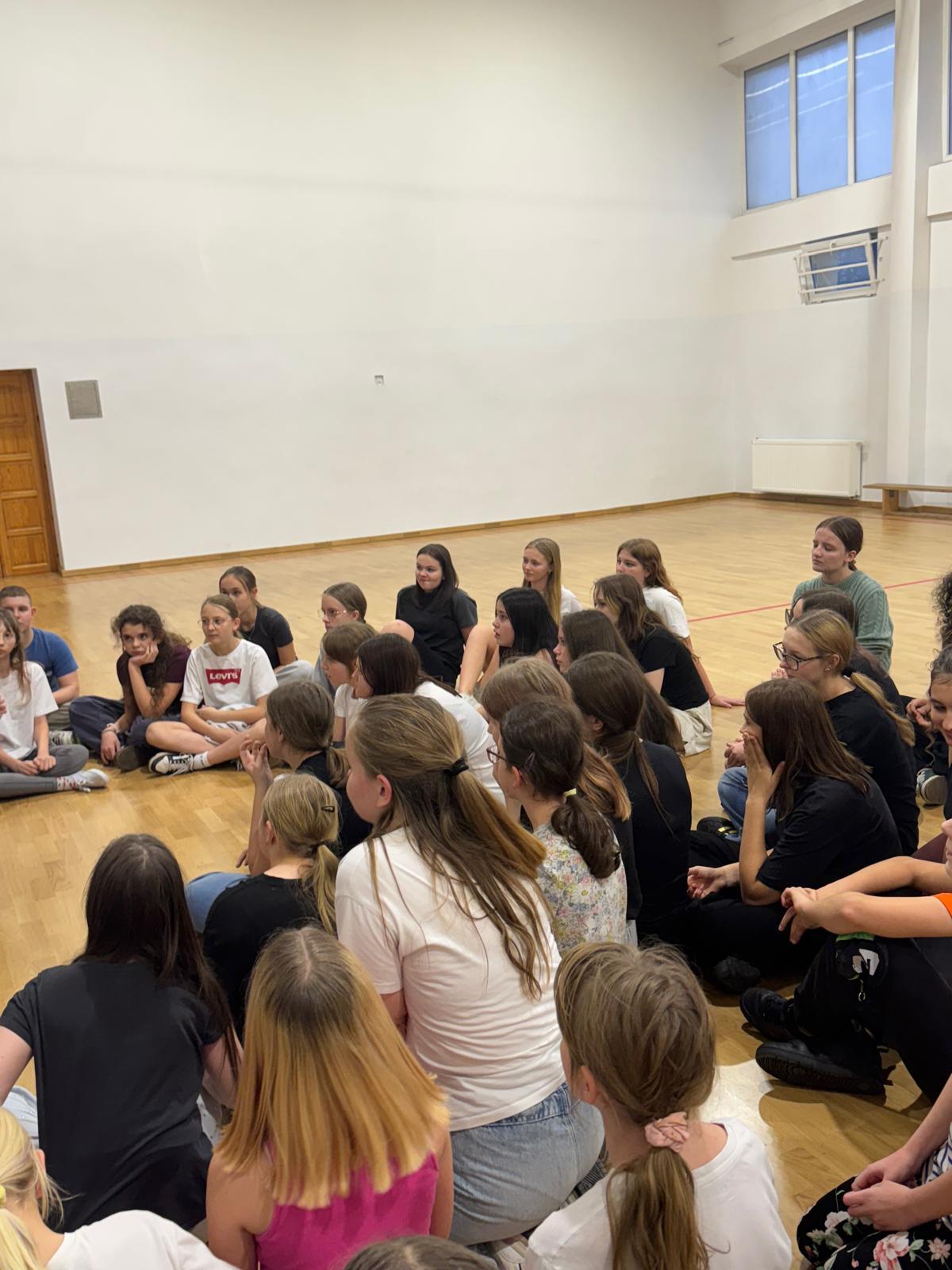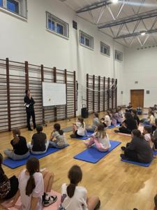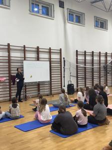 W czwartkowe popołudnie 4 grudnia uczniowie klas VI-VIII uczestniczący w zajęciach z edukacji zdrowotnej prowadzonych przez J. Gulewicz i K. Wilmont wzięli udział w trzygodzinnym spotkaniu podsumowującym pracę w I semestrze. W czasie trwania zajęć odbyły się warsztaty taneczne, które poprowadził Kacper Miedziński – były uczeń naszej szkoły a dziś instruktor tańca i właściciel szkoły tańca. Uczniowie mieli okazję nauczyć się prostego układu tanecznego. Po warsztatach tanecznych odbyło się spotkanie z psychodietetykiem Anną Zielke. Pani Ania przeprowadziła prelekcję na temat naszych relacji z jedzeniem i samym sobą. Pomogła uczniom zrozumieć nasze nawyki żywieniowe i jak budować pozytywną relację ze swoim ciałem. Po spotkaniu z psychodietetykiem przyszedł czas na wspólną zabawę. Uczniowie uczyli się współpracy w grupie, rywalizując uczyli się zasad fair play, nawiązywali nowe znajomości i integrowali się w grupie rówieśniczej. Po bardzo miłym spotkaniu zostały wręczone nagrody dla zwycięzców poszczególnych konkurencji i świąteczne upominki dla każdego uczestnika. Nagrody zostały ufundowane przez Lęborską Fundację Przebudzenie.