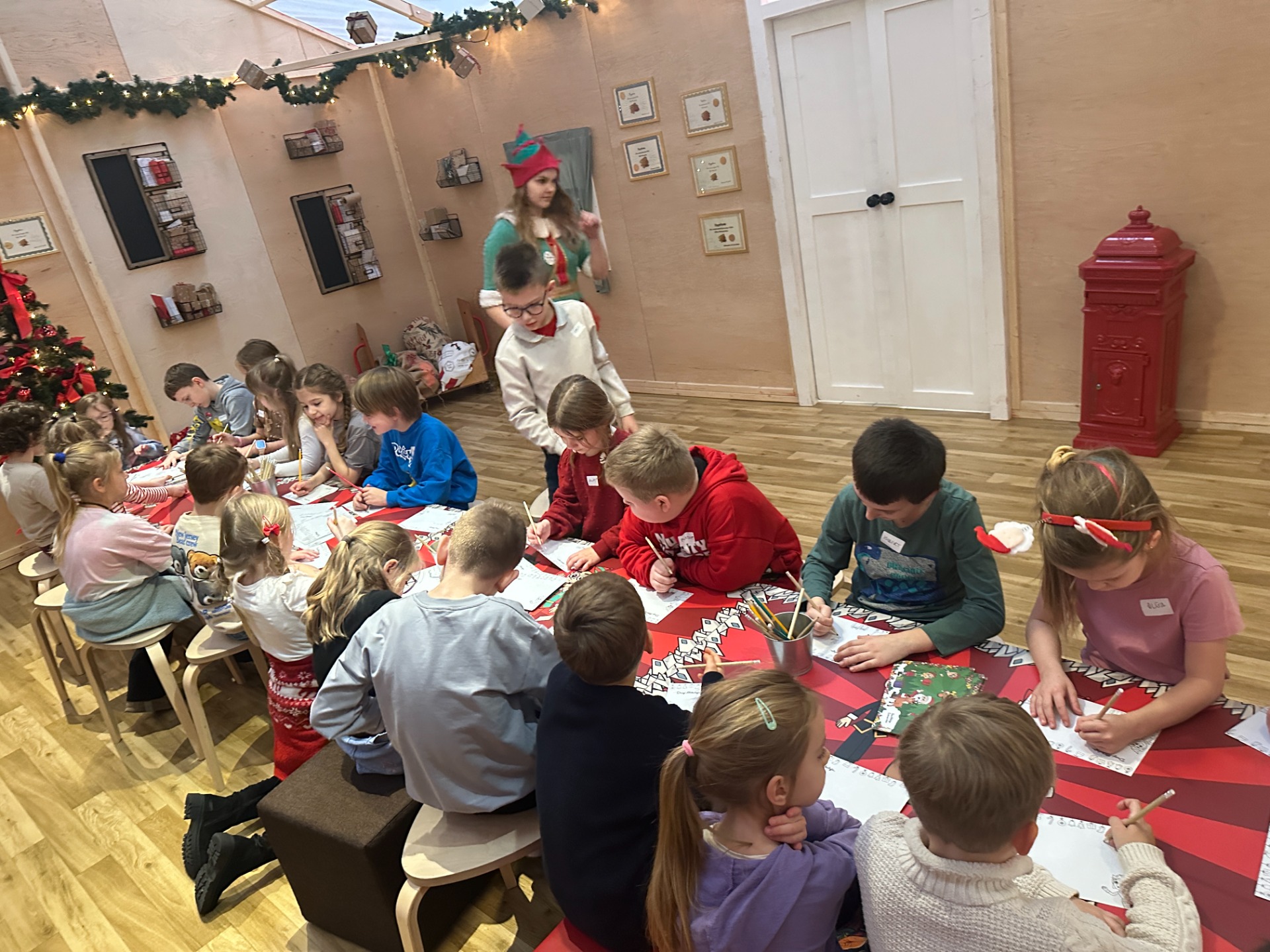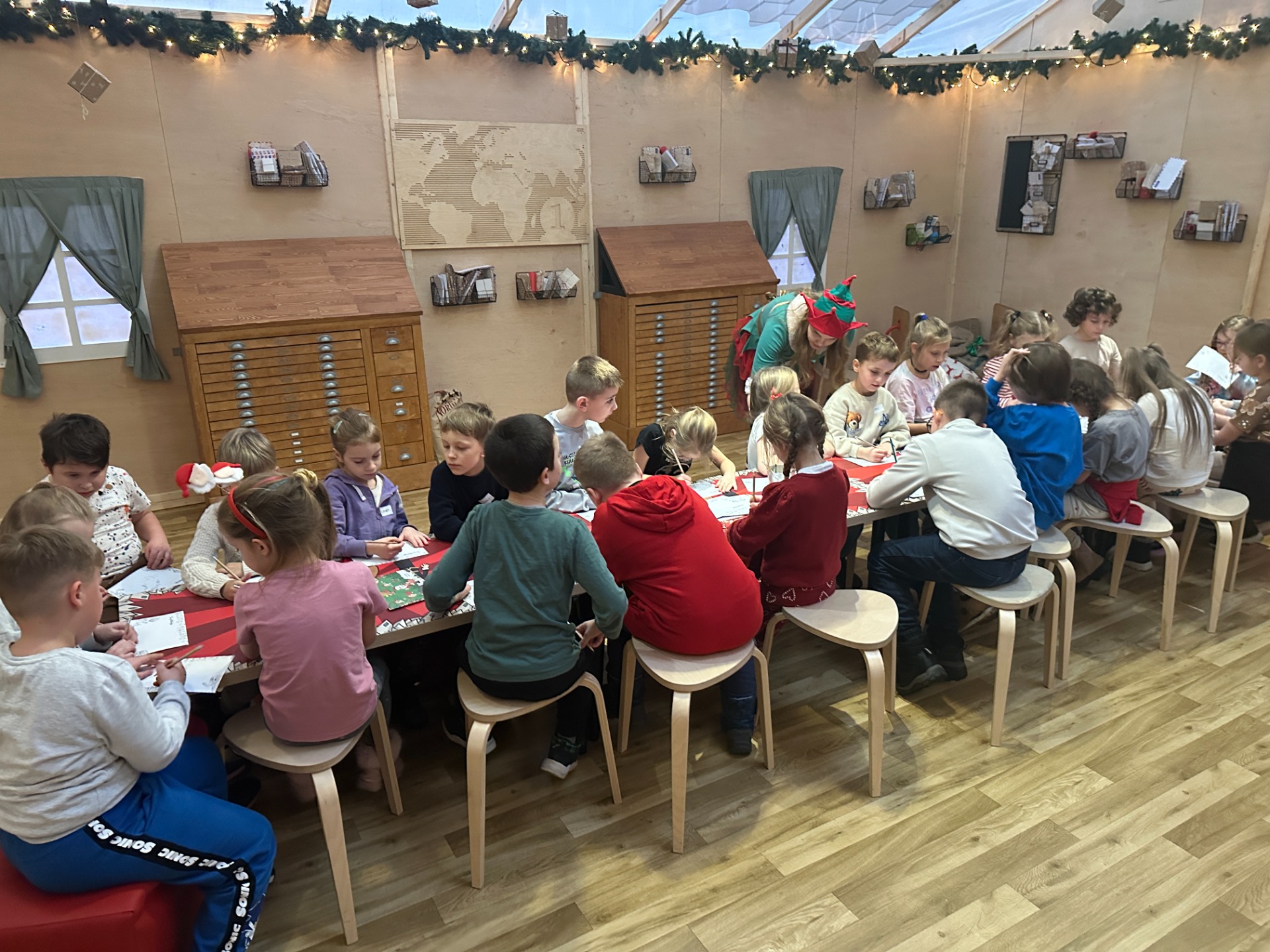 Na miejscu pierwszoklasiści zostali powitani przez elfy, które oprowadziły ich po kolejnych strefach fabryki. Dzieci brały udział w zabawach ruchowych, zadaniach zręcznościowych i kreatywnych warsztatach. Spotkanie z Mikołajem było dla wielu z nich najbardziej wyczekiwanym momentem — każde dziecko mogło z nim porozmawiać i zrobić pamiątkowe zdjęcie.
