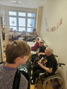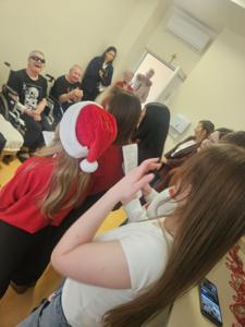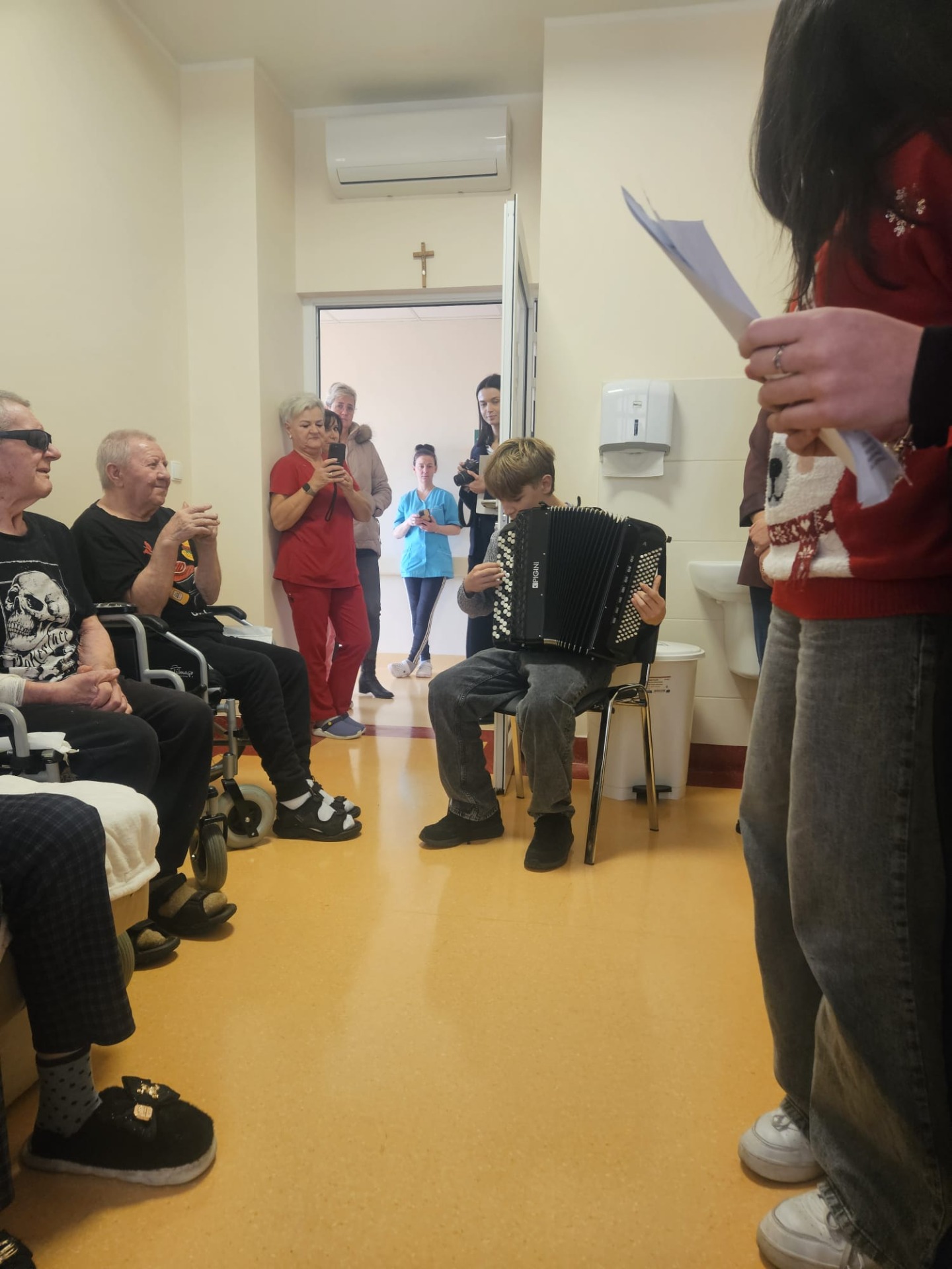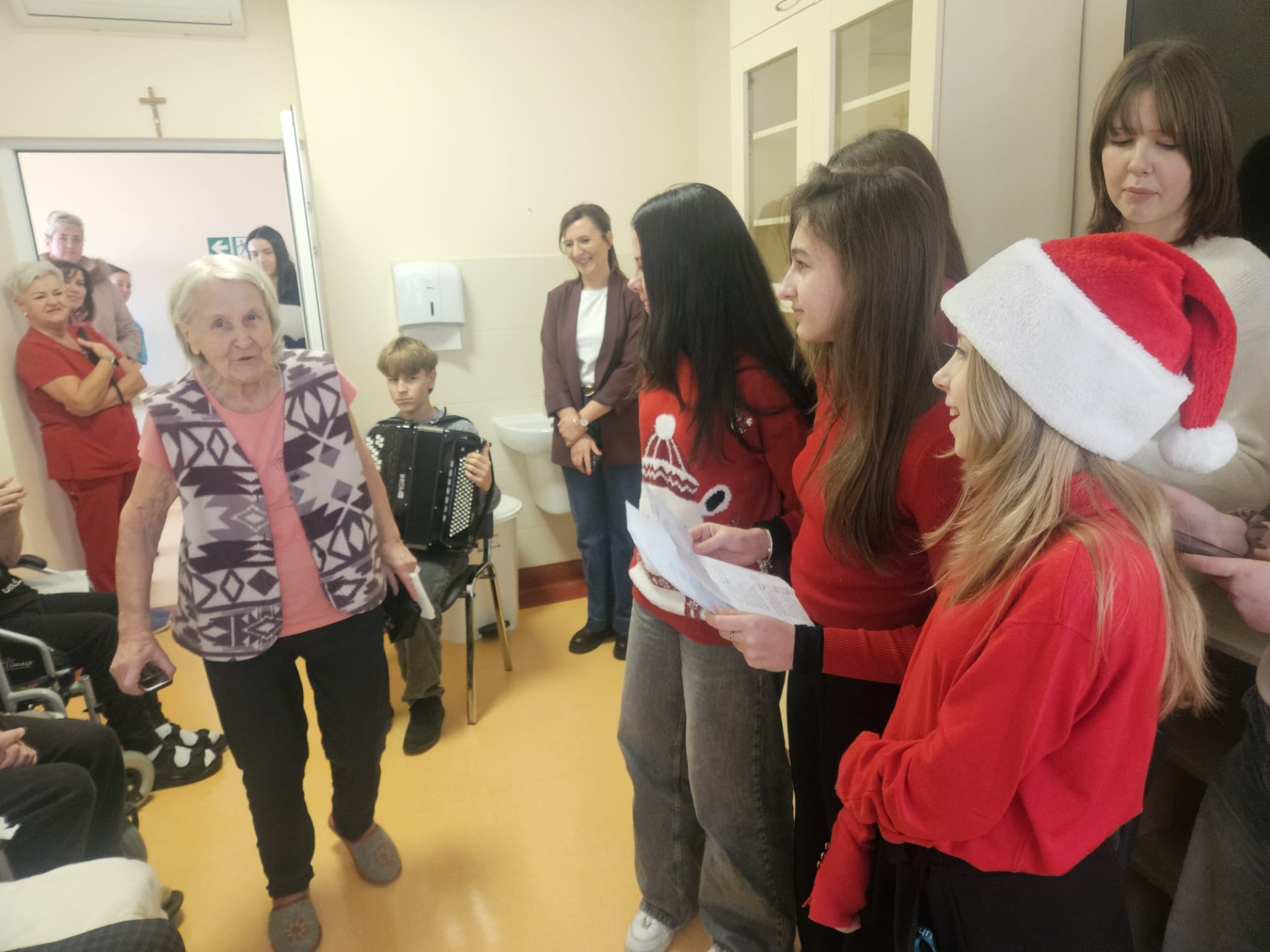 Uczniowie ze Szkolnego Koła Wolontariatu odwiedzili Seniorów z Zakładu Pielęgnacyjno-Opiekuńczego w Lęborku, niosąc ze sobą radość, uśmiech i prawdziwie świąteczne ciepło. Wspólnie spędzony czas wypełnił śpiew pastorałek, serdeczne rozmowy oraz chwile bliskości, które poruszyły serca zarówno Seniorów, jak i młodych wolontariuszy.