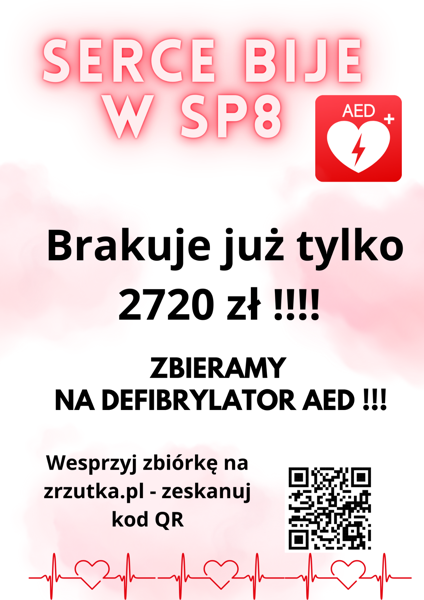 08.05.2025 Aktualności Zbiórka Dziękujemy za ogromne wsparcie naszej szkolnej zbiórki na defibrylator! ❤️ Dzięki Waszej pomocy udało się już zebrać 6730 zł, a do pełnej kwoty brakuje jedynie 2720 zł! Jesteśmy naprawdę blisko... Czytaj więcej