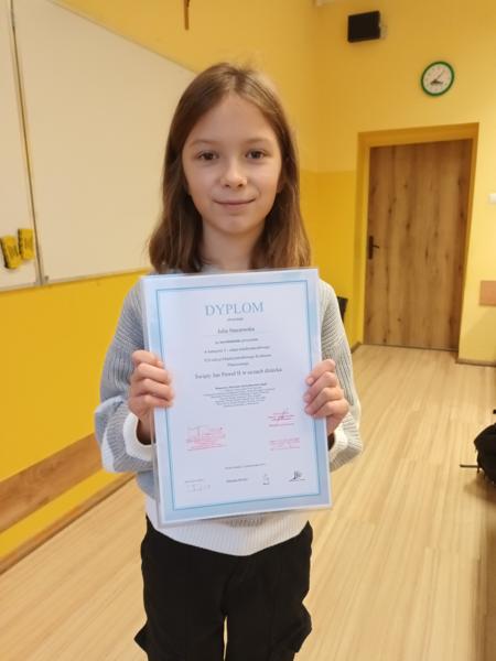 06.12.2024 Aktualności Konkursy - kl. IIIa Julia Staszewska otrzymała wyróżnienie w Międzynarodowym Konkursie Plastycznym "Święty Jan Paweł II w oczach dziecka".Emilia Wenta - I miejsce w Powiatowym Konkursie Plastycznym "Słowa mają moc". Czytaj więcej